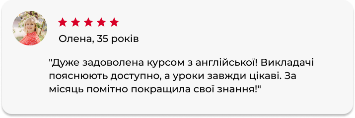 «Завдяки заняттям я тепер впевнено виконую домашню роботу з англійської. Викладаючи круті, дуже задоволений!»